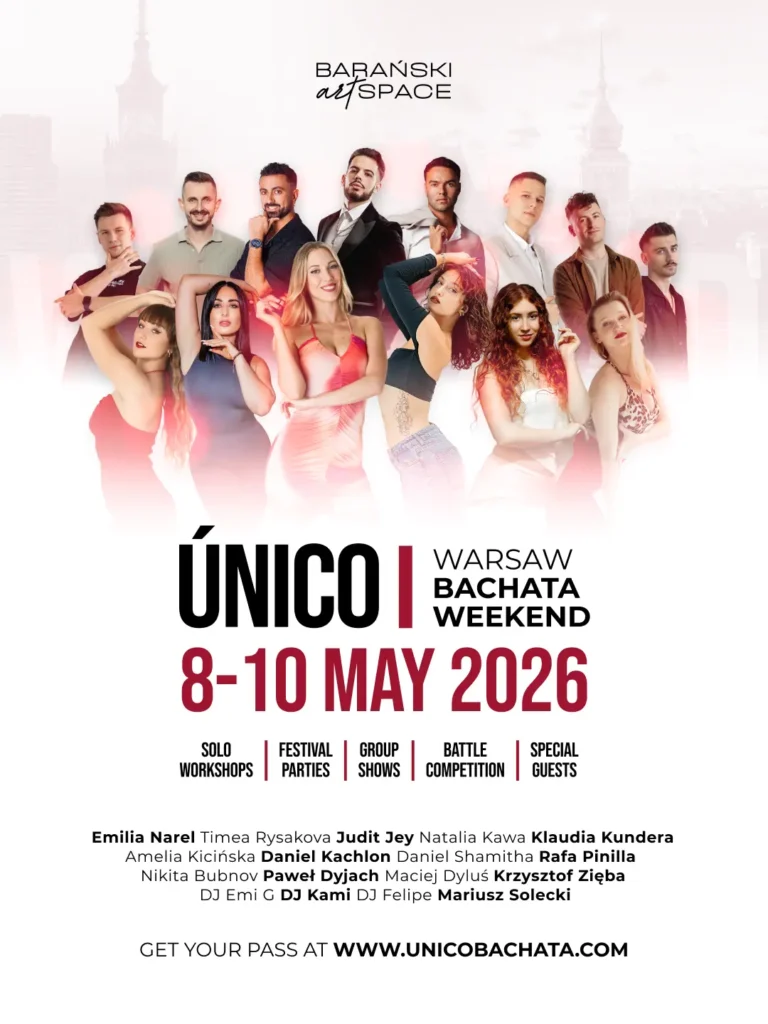 Jeśli szukasz wydarzenia, które łączy wysoką jakość warsztatów, międzynarodowy poziom artystyczny i niesamowitą atmosferę, ÚNICO Bachata Weekend 2026 jest miejscem dla Ciebie.